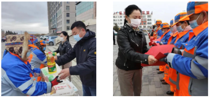 西烏旗政協副主席、總工(gōng)會主席薩仁圖雅現身(shēn)項目對全體(tǐ)員(yuán)工(gōng)進行慰問(wèn),向辛勤工(gōng)作(zuò)在一線的環衛工(gōng)人(rén)緻以節日(rì)的問(wèn)候和崇高的敬意,感謝他(tā)們爲環衛事(shì)業作(zuò)出的貢獻,希望廣大(dà)環衛工(gōng)人(rén)深入貫徹落實生(shēng)态文明思想,傳承弘揚“時傳祥精神”,并将中華全國(guó)總工(gōng)會和住建部發布的《緻全國(guó)環衛工(gōng)人(rén)的慰問(wèn)信》送達到環衛工(gōng)人(rén)手中,還(hái)爲他(tā)們分(fēn)别發放(fàng)慰問(wèn)品。